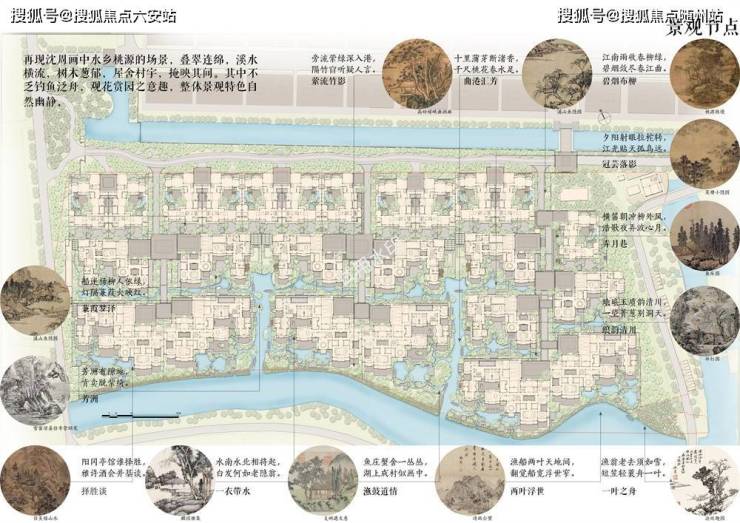 以明代画家沈周《水村渔乐之桃花源》为灵感,匠造不拘园、渔隐园、绿琼洲三大主题景观,融合萦流竹影、曲港汇芳、碧烟布柳等十三大景观节点,擘绘一座私藏版江南名园。