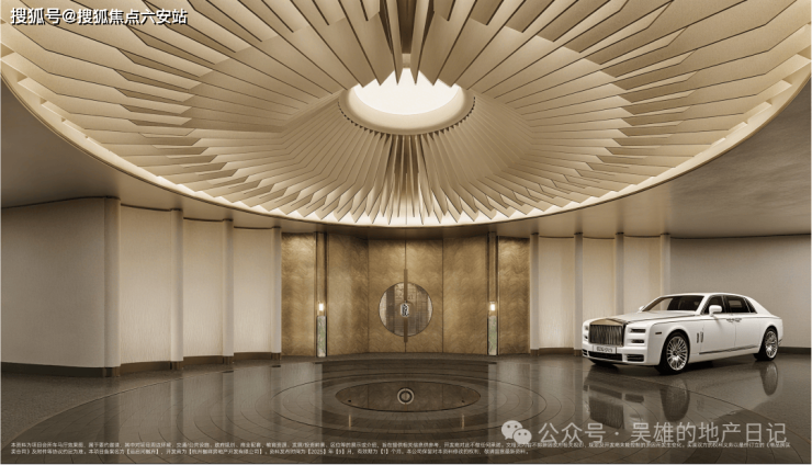 双车马厅设计,取非遗骨扇形制,兼具隐贵气质与礼仪功能,营造静谧、尊崇的归家体验