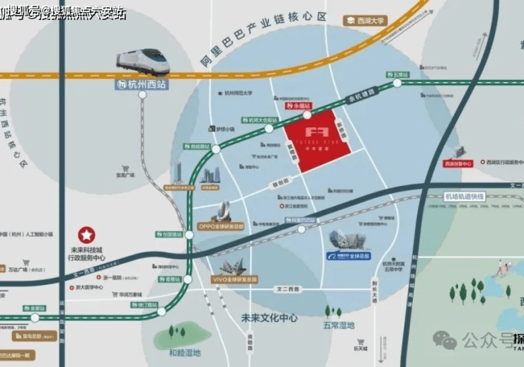 地理位置:坐落于杭州未来科技城核心区域,紧邻地铁5号线永福站D/E/F出入口,实现地铁上盖的无缝对接。