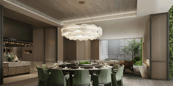社区还配置全日餐吧,堪称专属 “行政酒廊”。午后阳光斜斜洒在水景旁的柔软座椅上,与挚友分食一块提拉米苏,目光流转间,澄澈水境里的锦鲤如灵动金鳞穿梭,偶尔甩动尾巴溅起细碎水花,恰好落在脚边的青石上,时光也变得格外温柔。