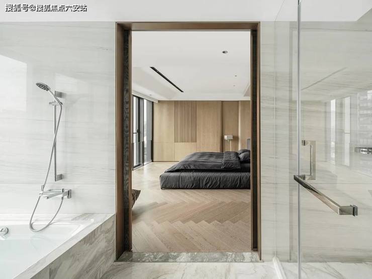 城市大平层的优势在于一览无余的塔尖视角,从主卧直接眺望大小莲花与钱塘江岸的景色无疑是住宅的“顶配体验”。主卧床品同样来自SABA的pixel系列,把高级灰的风格延续到底。转角TOGO单人沙发以皮革的材质穿插在空间种,给空间更加丰富的“酷感”层次。