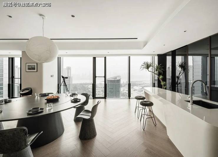 整体开放的空间布局链接起厨房、岛台、餐厅、客厅以及生活区域。把城市精英的生活模式以开放、自由、独享的视角一一展现开。