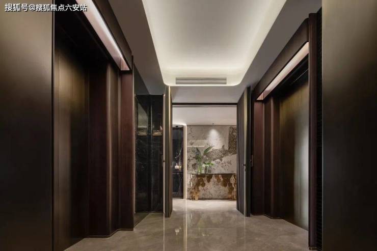 在「胤璞」业主专属的车行廊道中,采用降噪花岗岩满铺、星空顶的设计,赋予通廊丰沛的艺术感与功能性。让人在渐进归家的路途中感受尊崇身份的匹配。
