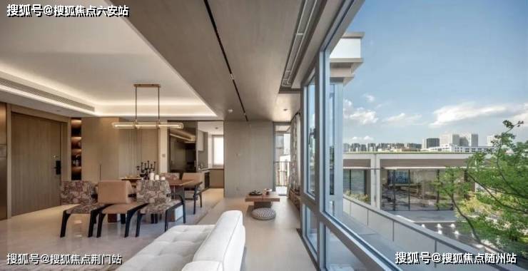 建面约103㎡的边套 更是堪称神迹,将小户型的空间魔法玩到了极致。 客厅到阳台的地面 、 天花直接拉通 , 甚至两侧的墙垛都已隐身 , 整个餐客厅面积达到约35㎡ (含阳台),这可是140㎡以上大宅才有的空间感!
