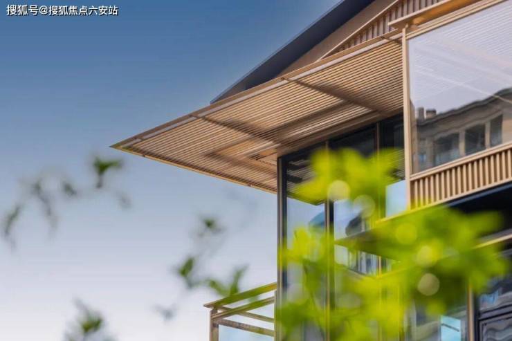 在立面打造上,樾青岚提炼飞檐、斗拱、引檐、直棂窗等宋代建筑细节,融揉现代审美工艺,重塑东方的当代表达;提取宋画中的线条感,通过局部铝线条的运用,融合巨幕灰蓝色玻璃,让建筑隐于自然,如画框一般,呈映天光云影。