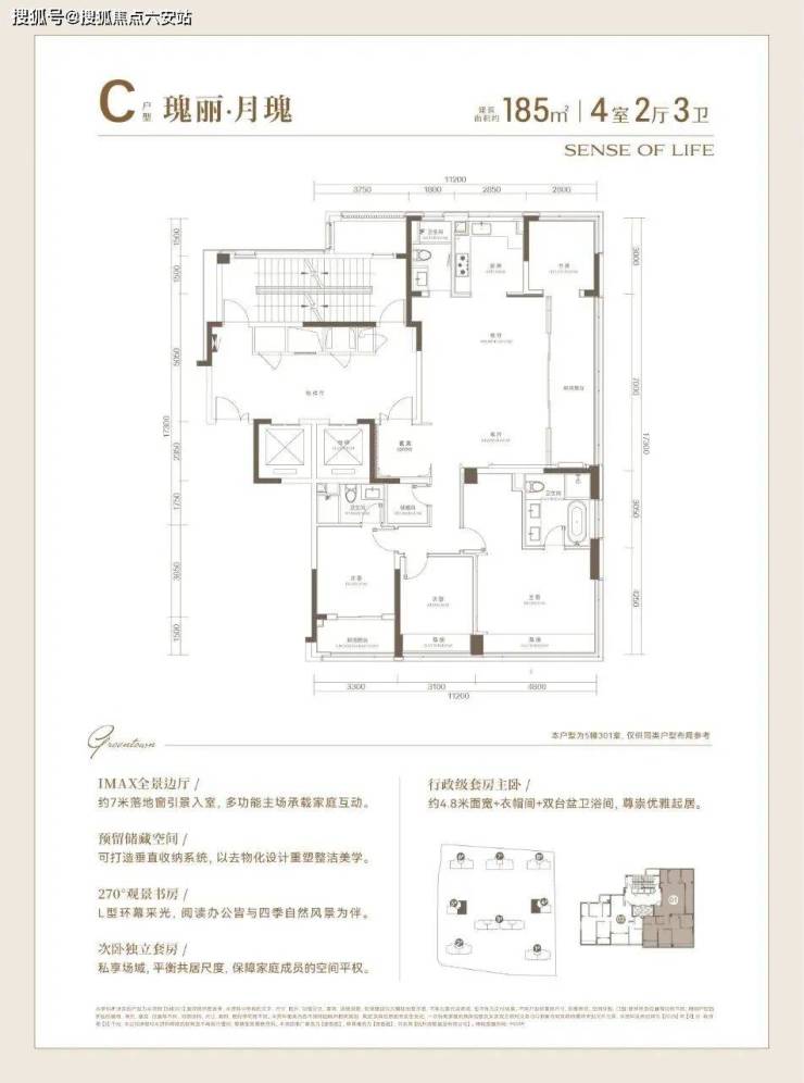 这款边套户型,不仅是私梯独立玄关入户,而且落位在4幢、5幢,直面中央景观园林,约7米瞰景落地窗引美景入室;主卧约4.8米面宽+270度环幕飘窗设计,豪华双套房,约52方的超级大方厅装得下一套小刚需房,媲美星级酒店居家体验。
