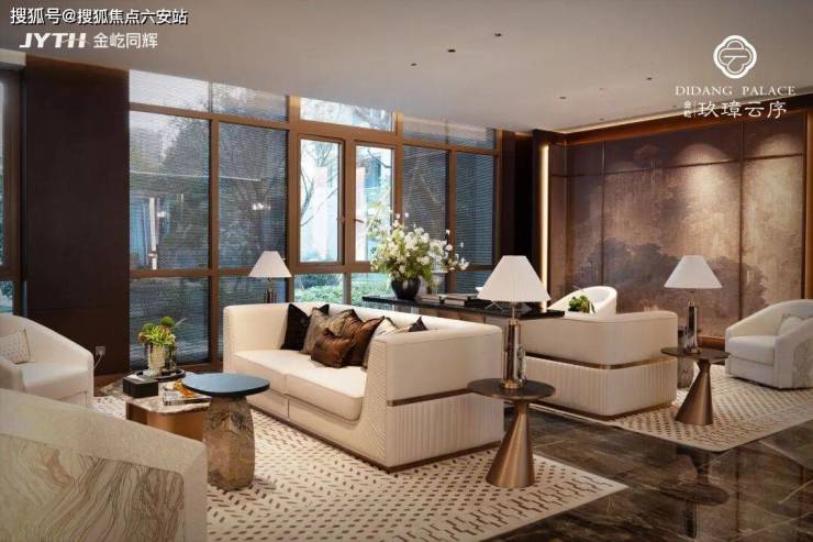 奢石铝板美学:中式重檐屋顶、金属线条窗框、大面玻璃幕墙,传统与现代在此对话,比传统墅品更通透轻盈,成为迪荡崭新的建筑封面。