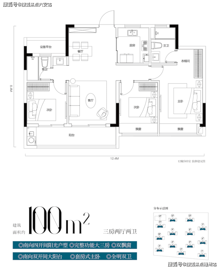 天阳·湖与舍有建面约100-128方三个户型,共同特点就是大面宽,特别是建面约100方户型,又一次刷新了行业对户型的认知。