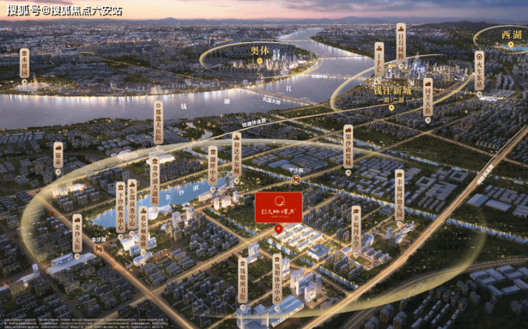 【项目位置】杭州市钱塘区学林街与幸福南路交汇处,地铁1号线下沙西站旁,金沙湖CBD核心