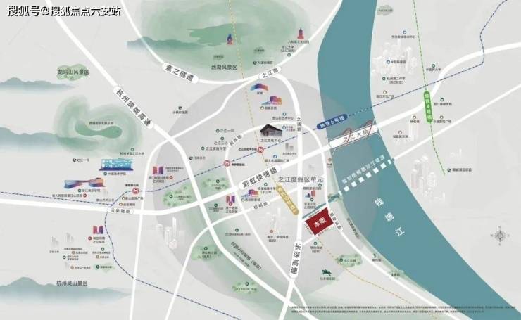 本案站位之江度假区板块核芯,北接西湖景区,东望钱塘江,主城多区域资源在此汇集。 紧邻枫桦路环线,串联之江核芯配套,虹吸效应尽显。