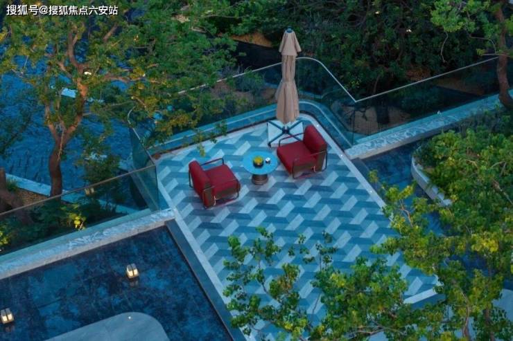 知海棠抬高地基设计(约3.2米)也是之江独一份的,不仅让住宅视野更开阔,还形成了立体花园、悬挑露台等多层次景观,园区私密性更强,仿佛一处“专属领地”,远离喧嚣。景观设计融合西湖元素,3万多方的中心花园、泳池、星光水院,让“度假感”成为日常。