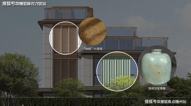 如玺华院通过三重创新,重新定义了低密产品的新高度。外立面的革新是天青陶板的运用,需20多道工序烧制而成,成品率仅30%,但依然坚持使用,复刻南宋汝窑“雨过天青”的质感。垂直空间的极致利用是第二重创新。