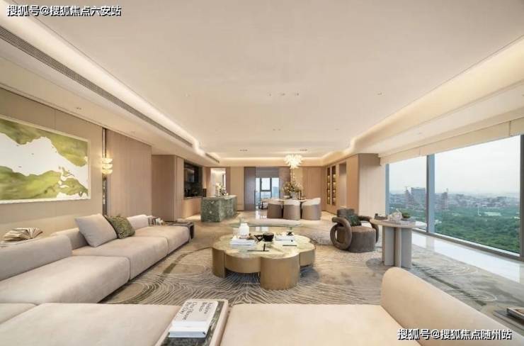 - **22米南向IMAX巨幕**:建面约340㎡瞰景平层,270°环幕视野,LDK一体化设计,6.8米挑空客厅搭配270°智能雾化玻璃,科技与美学交融。