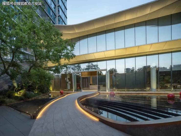 当波纹装置在超长界面上流转,光影与金属的碰撞如潮水轻吟,一场关于归家的仪式悄然开启。人车分流的静谧,精工石材的温润,艺术的波纹在夜色中泛起涟漪,仿佛天地初开时的一抹温柔,为每一位归者献上无声的礼遇。