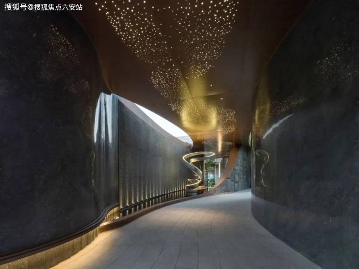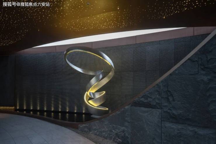 踏入礼宾空间,旋转雕塑以优雅的弧度向上生长,与静水倒影的星空顶遥相呼应。水景如镜,映出星辰流转的轨迹,这一刻,感官与时空交融,都市的喧嚣被悄然抚平,唯有精致石材的低语,诉说着栖居的诗意。