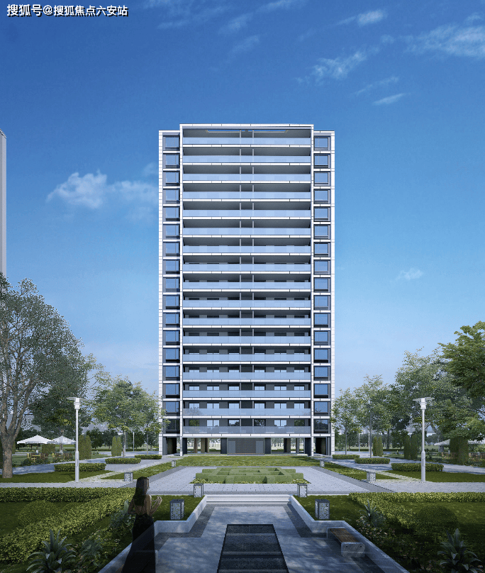 建筑立面以横向线条为主,配合经典灰白色系,通过线条的穿插构成交错纵横的几何美感,营造高级、大气、简约的建筑气质。