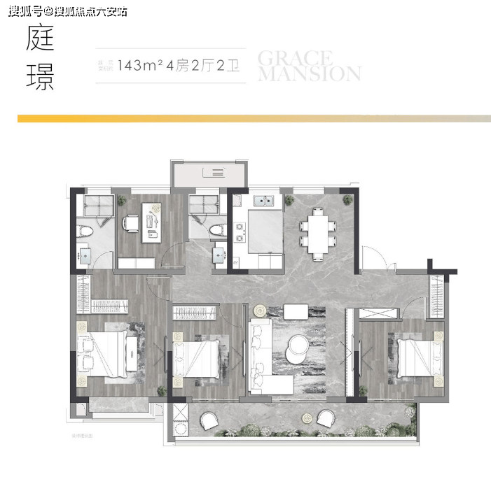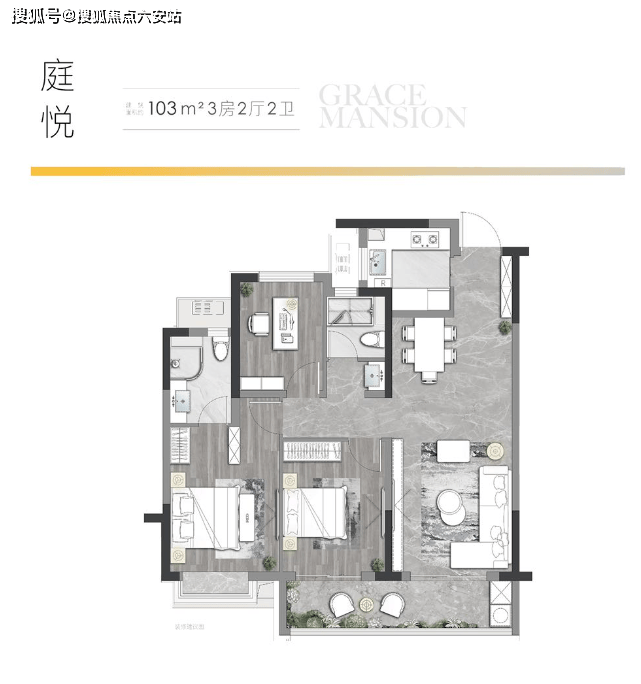 ✨户型面积:建面约103/120/130/143㎡三房两厅两卫,四房两厅两卫