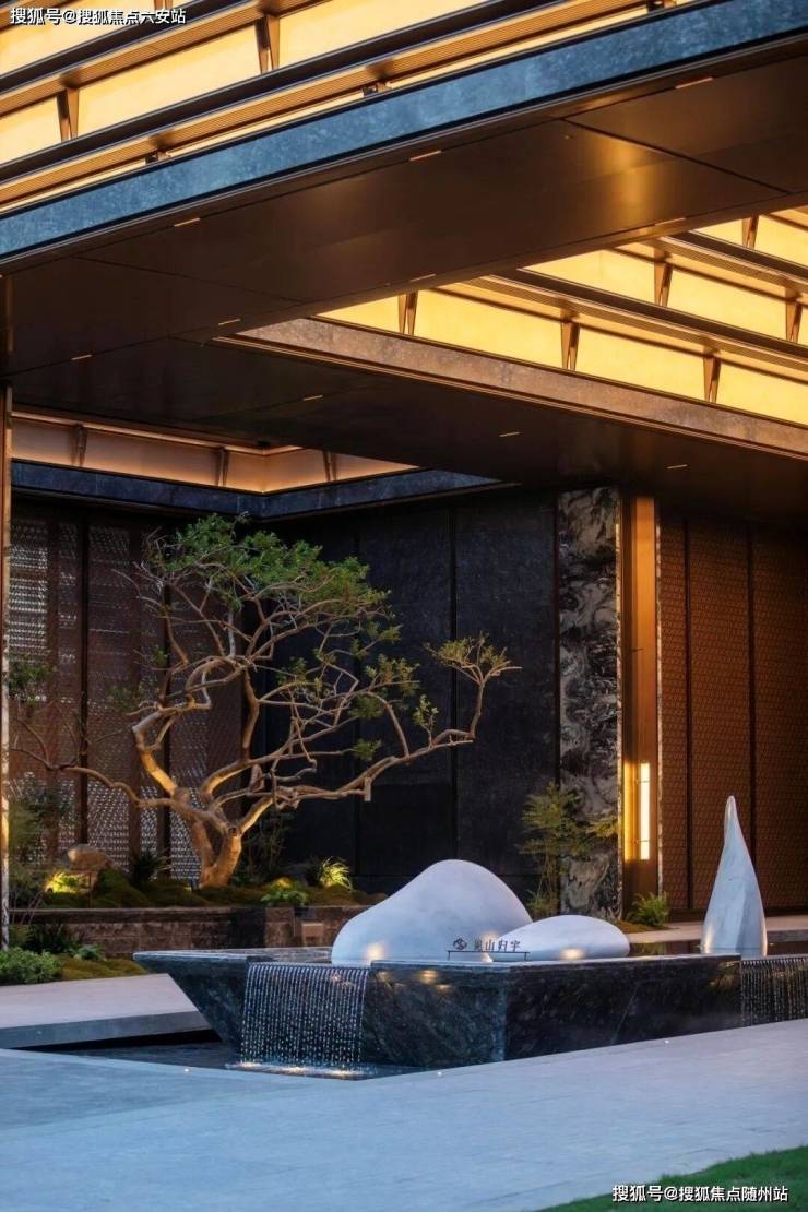 以“引水入园”理念打造中央水轴,融合溪涧、瀑布等景观;绿化率35%,复刻“九进归家”礼序。