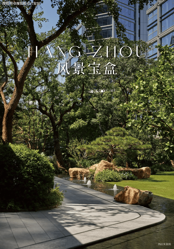 走入T-ONE潮博西区的园区,可以看到一条蜿蜒的水系串联着不同场景,贯穿整个楼盘。在这里,结合了杭州「钱塘江潮」的在地文化,用溪流与叠水打造出了一座很有度假感的花园。花园中,凡是有户外座椅的地方,就会有微风、树荫与水流的环绕。