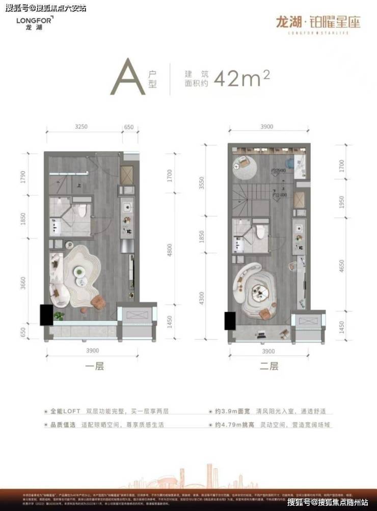 - **爆款双钥匙**:建面约42㎡双钥匙LOFT,4.79米挑高+3.9米面宽,买一层得两层,租金收益翻倍,总价70万起!