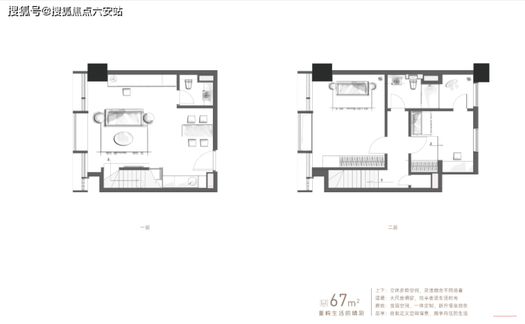 •建筑面积约67㎡户型,约4.79米层高及6米开间,立体多维空间,大尺度明窗;