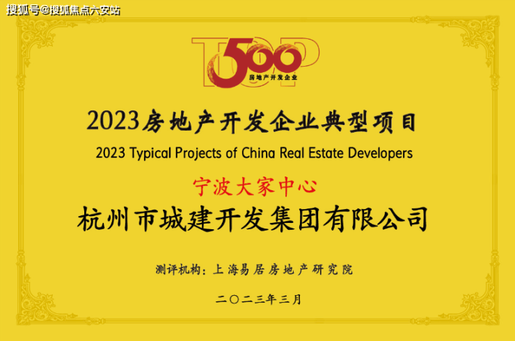 •大家中心荣获2023年房地产开发企业典型项目