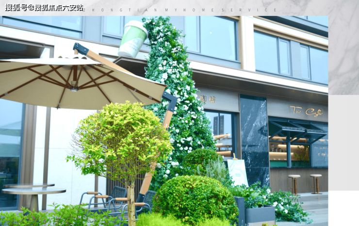 中天拾光翠语是板块内第一个公建化外立面的项目,金色飘檐在阳光下熠熠生辉,南立面以大面玻璃主打,白、金、蓝灰为主调,现代感与高级感并存。基部用上了贝金米黄大理石,温润如月光,细节处从宋代建筑中提炼重檐与斗拱元素,细细描摹眉眼,锁定板块颜值翘楚席位。