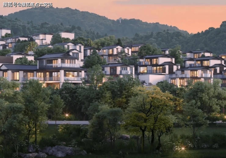 建筑风格:以新中式为主,融合古典与现代美学,白墙黛瓦、飞檐翘角,与周边自然山水相生相融。