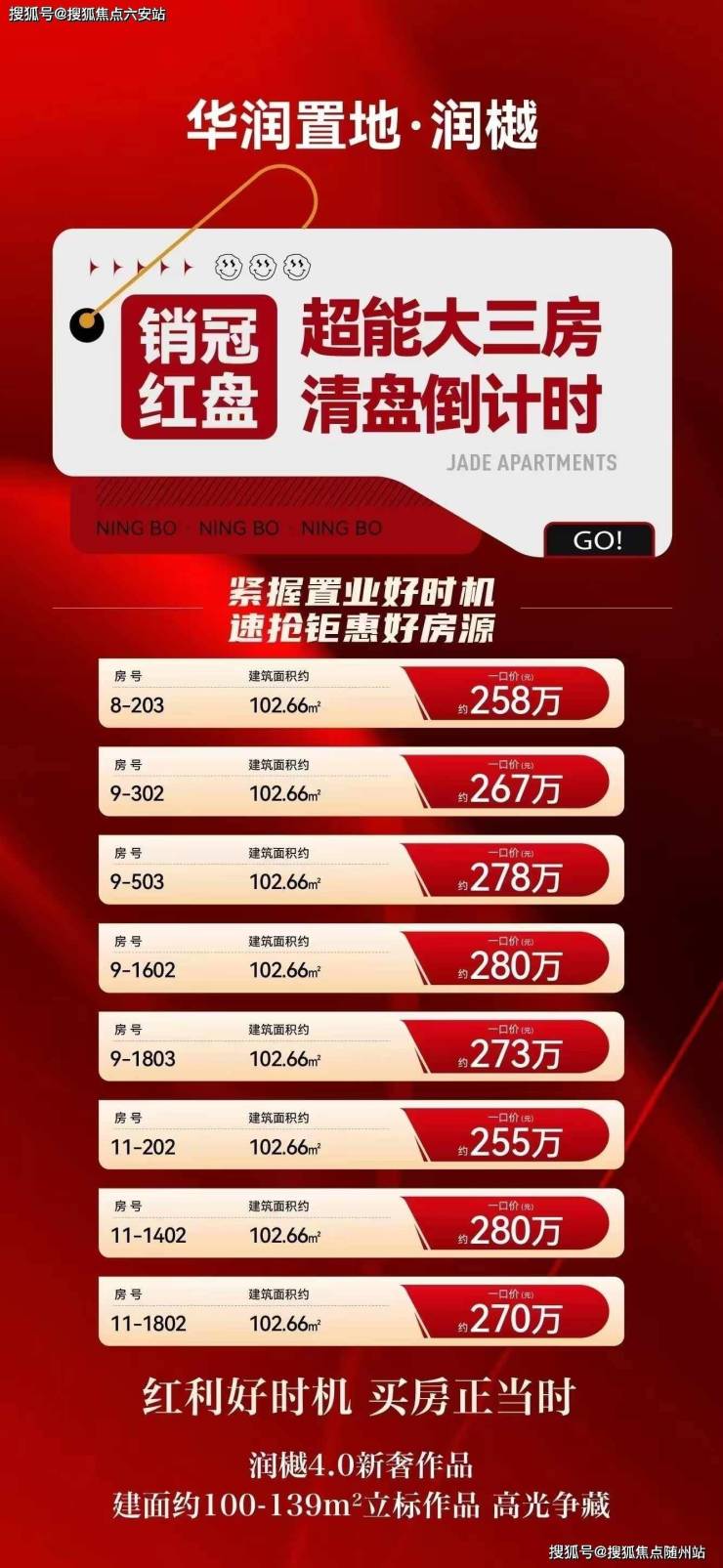 但这份“时机”或许并不会持续太久——在楼市信心回升的“热势”下,华润·润樾建筑面积约100㎡的“4.0新品”一经推出,去化速率远超预计,存量瞬间告急。