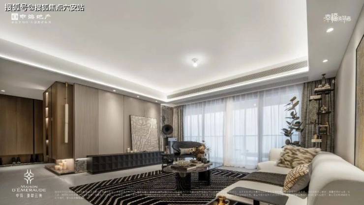 现代静奢美学:采用银灰色系铝板外立面,大面积玻璃镶嵌金属线条,以极简形态呈现通透质感。项目整体中轴对称布局,21-26F高层围合式排布,楼间距最大达80米,中央景观花园面积约13000㎡(相当于两个标准足球场)。