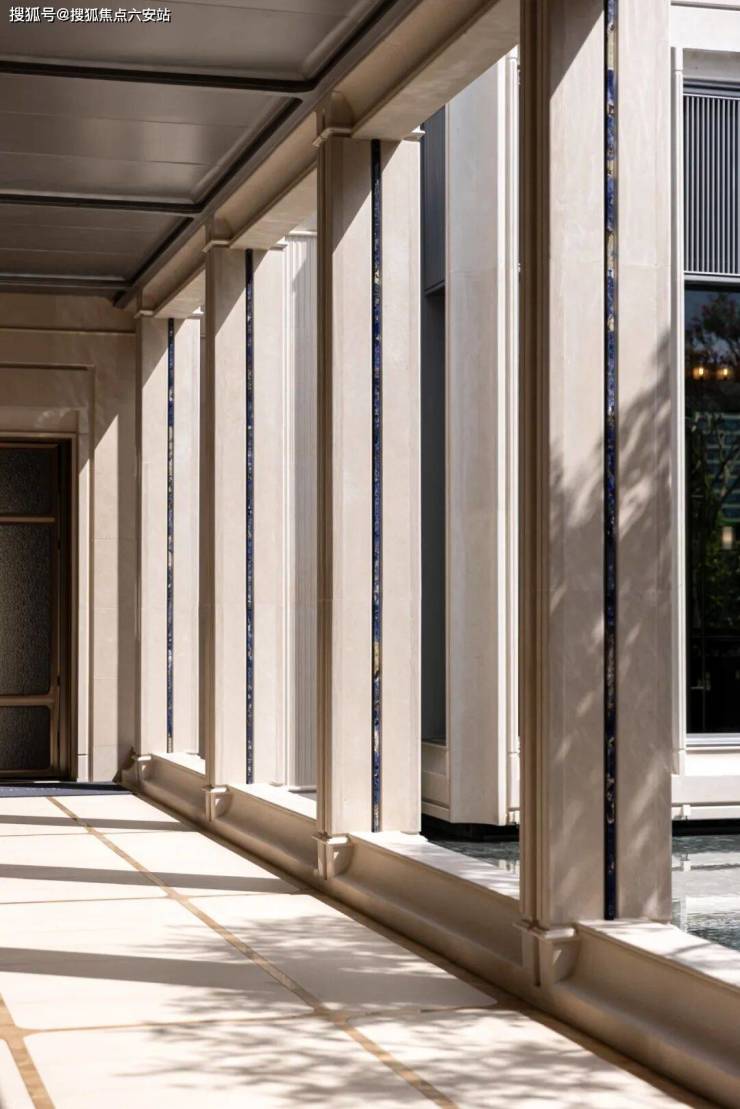 天阳·湖山丽舍的水池采光井边缘,则采用来自西亚地区的“白冰玉”奢石。白冰玉的皎光潋滟之间,凝结水月共生的温润。这种材料以其温润的质感和皎洁的光泽,为空间增添了一抹清新而雅致的氛围。