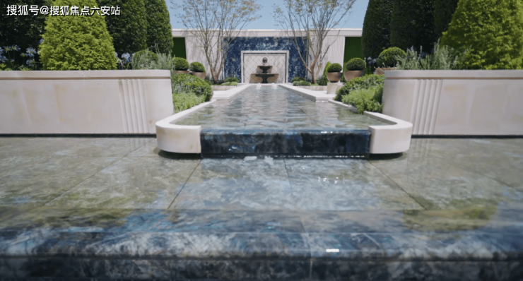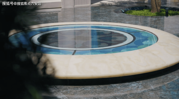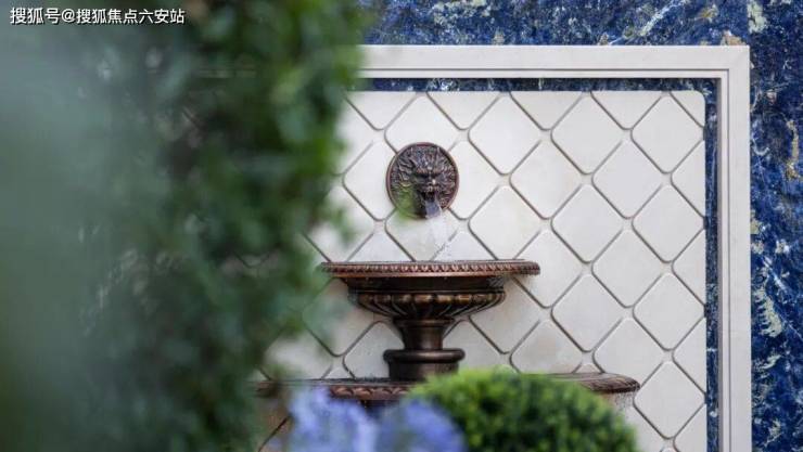 中庭水院景观水池中镶嵌的“蓝翡翠”奢石,独特蓝色光泽如银河深邃。这种来自马达加斯的名贵奢石,色泽深邃而纯净,如同宝石般璀璨夺目。在光线的照射下,蓝翡翠散发出迷人的光泽,让人仿佛置身于梦幻般的仙境之中。