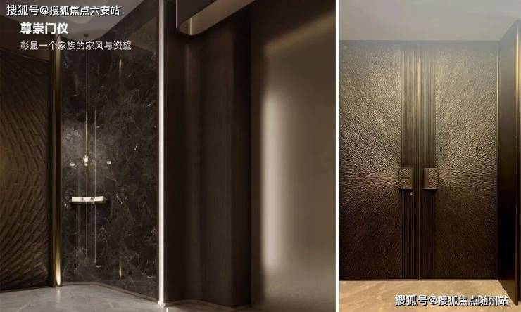 胤璞精心设计五重归家动线,营造层层递进的仪式感。从40米挑檐环岛落客区开始,艺术风帘水幕与名贵沙朴植种便营造出浓厚的艺术氛围。