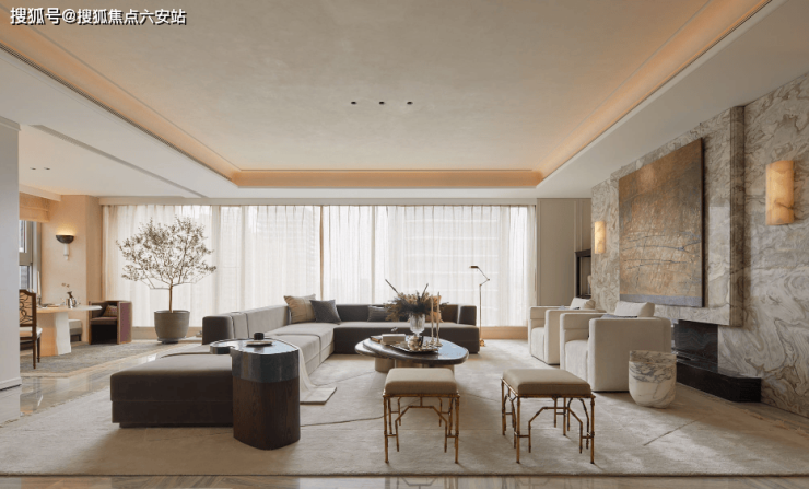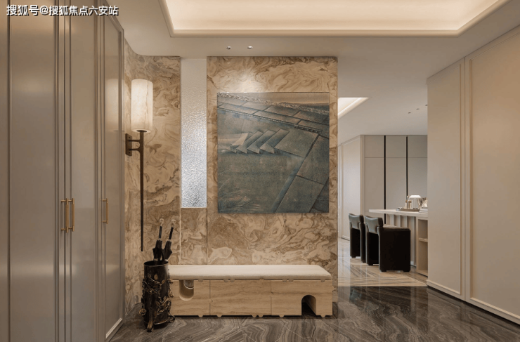 以“折衷共相,为真实而设计”的主张,溯源法国宫廷的浪漫与精致,融合轻法式风格,通过现代极简的笔触勾勒空间。雪花白大理石与雅博白大理石拼花、水纹玻璃与石材完美拼合的背景墙、多哈印象大理石地面以及安第斯雪景大理石主背景墙,营造回归生活本真的松弛之境。