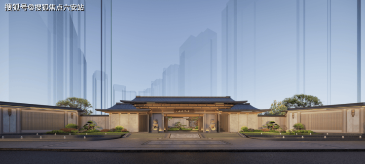 建发云城之上采用建发中式五大系列之一的禅境中式风格,将东方古典文化内涵与现代生活方式巧妙融合。主入口迎宾广场的门楼宽幅长达约 61 米,重檐悬山式设计搭配芝麻黑石材地雕、“鱼跃龙门” 御道,两侧分立石狮和罗汉松,尽显中式建筑的庄重典雅,彰显大户人家的气派。轴对称的大门设计,饰以中国传统华纹,古铜色与木色的配色,沉稳大气又不失雅致 。