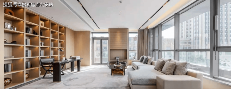 项目由中天美好集团打造,以“水晶盒子”为设计灵感,外立面采用全玻璃幕墙与金属线条结合,局部融入飞檐、格栅等东方元素,形成兼具现代摩登与传统韵味的视觉符号。5栋建筑围合布局,搭配下沉式庭院与景观水系,打造“隐于市”的静谧空间。室内层高达3.7米,配合270°环幕观景窗,将钱塘江景与城市天际线尽收眼底。