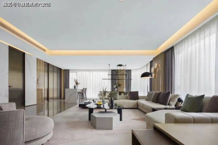 “现代度假风”的角厅,低密大平层,展现现代、轻奢、时尚、艺术、精致的生活韵致,在现代都市中实现轻松的度假生活。