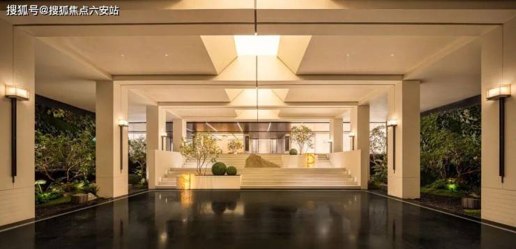 约150米超长的城市界面,揉融约36米进深的震撼镜面大水景,和悬垂的流瀑,结合建筑立面打造多层次悬浮树池、跌水、瀑布,仿佛一层透明的帷幔,将外界的纷杂悄然滤去,完成让心瞬间沉静下来的“抵达艺术”。