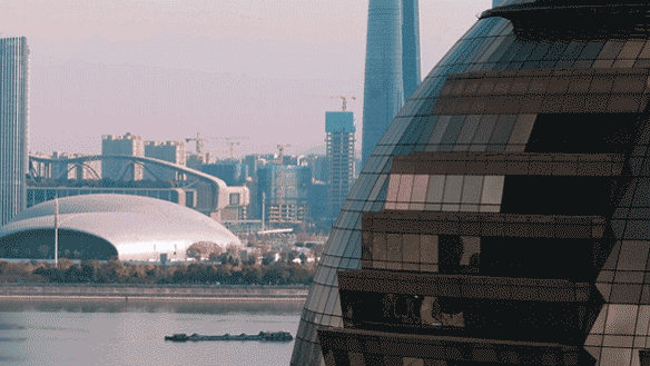 项目地处奥体博览城核心位置,簇拥着2024年杭州亚运会建筑群奥体中心、杭州世纪中心“杭州之门”。建筑蕴含着城市丰富的历史文化,并且映射了这里辉煌的城市景观。光滑的玻璃外墙如丝绸般流动飘逸,立体重温着杭州丝绸、杭绣文化,它层层剥落开来,创造出向城市开放的欢迎姿态。