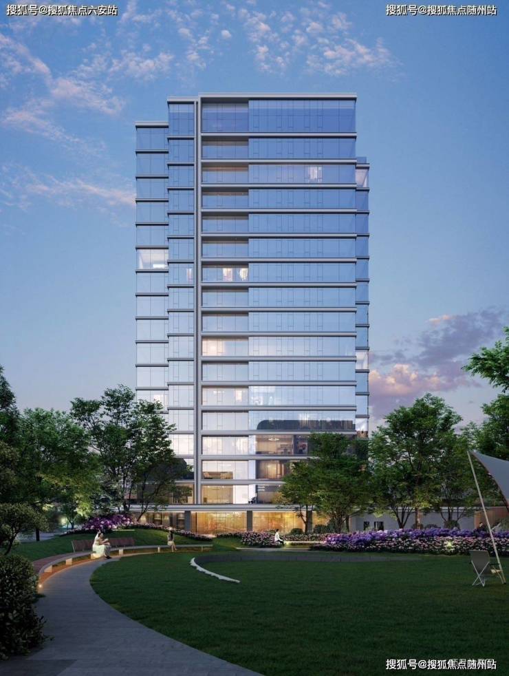 7栋围合式“水晶天幕”楼宇,玻璃与铝板立面,270°景观视野,最大楼间距63米。