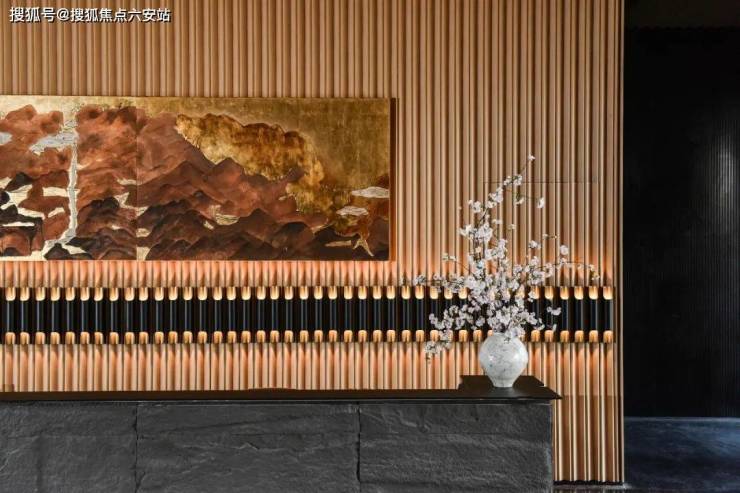 立面革新:外立面采用香槟金铝板+蓝眼睛石材+玻璃幕墙,融合歇山重檐、纳福悬鱼、瘦金披檐等元素。北立面罕见全铝板覆盖,颠覆传统豪宅“南奢北简”惯例。工艺细节:四面进口石材干挂、17cm静音楼板、多孔页岩砖基筑,防水防潮性能卓越,筑就“巨幕玻璃框景的金线建筑”。