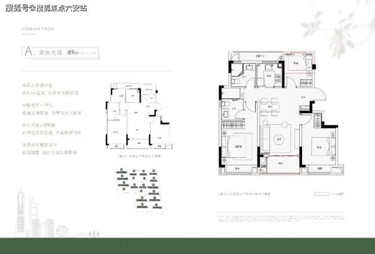 杭颂星澜府在户型的设计上更加游刃有余,主力的89方户型设计成了类四叶草的布局:动线合理、减少走廊的浪费、各卧室独立且私密。同时三开间朝南的设计,面宽达到了9.7米,主次卧均带有飘窗,采光充足,而且主卧为套房的布置,让生活更舒适。