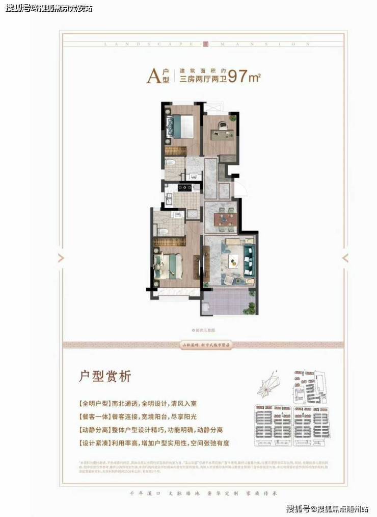 洋房77–119㎡:主力户型均采用三开间朝南设计,客厅与主卧直面山景,得房率超80%,空间利用率领跑区域!