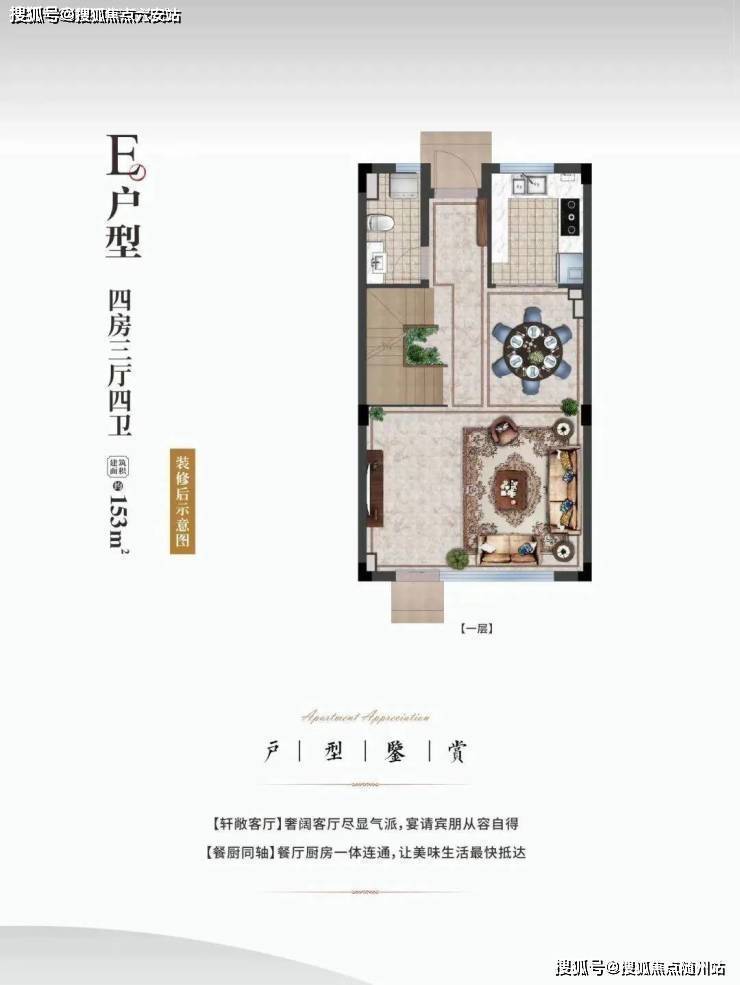整体四房三厅四卫动静分离的设计;U型厨房连接餐客厅,组成了开阔大气的全功能型首层空间。