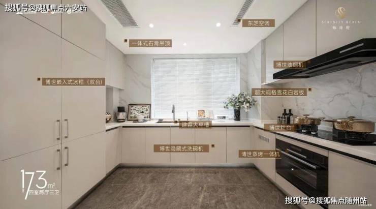 厨房上了博世六件套,包含双台嵌入式冰箱,卫浴品牌则以汉斯格雅、唯宝、松下为主。