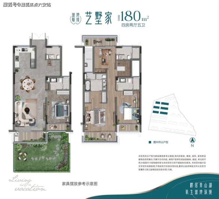 • 坡地联排:160-180㎡四房五卫,南北向花园+地下室,层高最高3.6米,满足三代同堂或改善进阶需求。