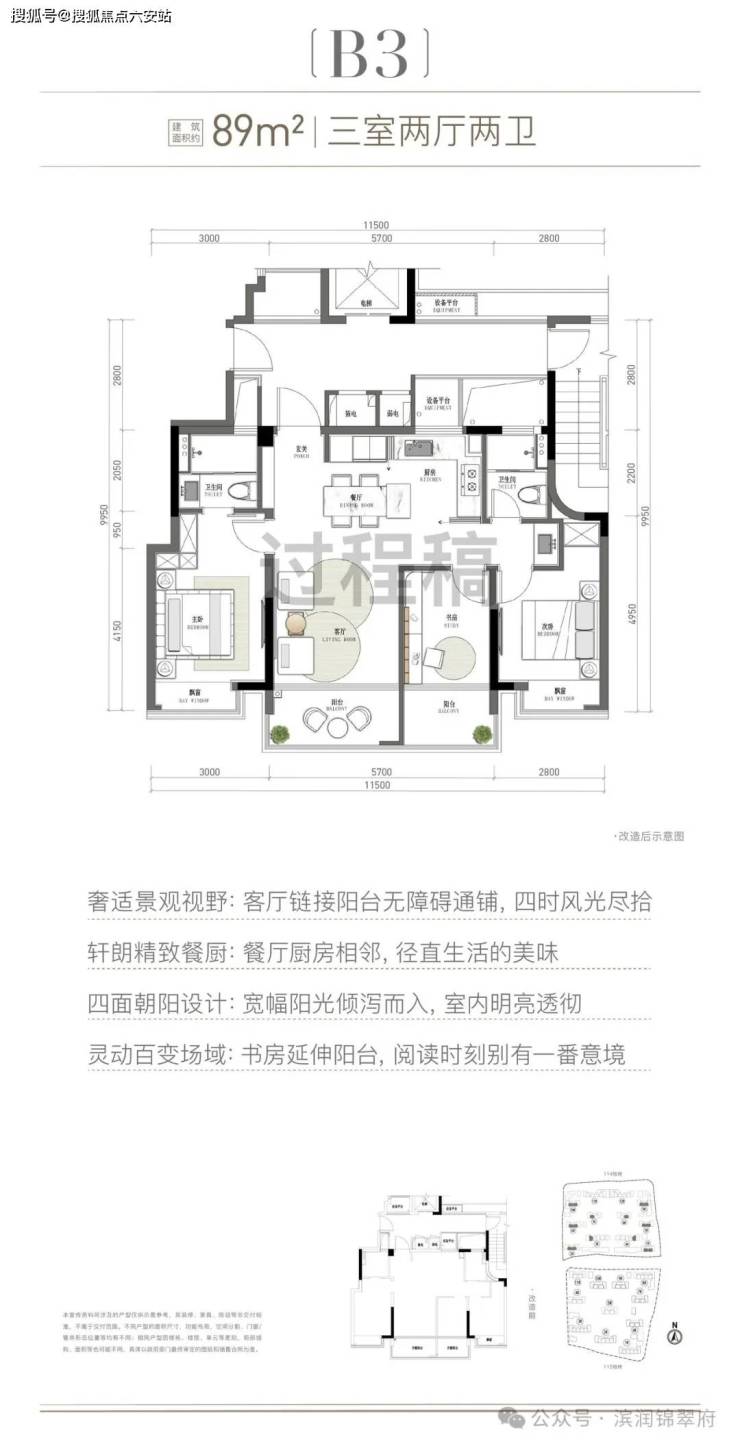 户型与价格:主力户型76-139㎡,89㎡户型实现四开间朝南设计,毛坯均价约2.3万/㎡,精装均价约2.6万/㎡。