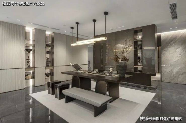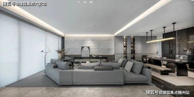 室内设计方面,唐忠汉采用LDK一体化布局,325㎡户型客厅面积达95㎡,超越武林壹号顶跃尺度。配合270°环幕落地窗,引入充足光线与运河景观,营造出通透开阔的空间感。