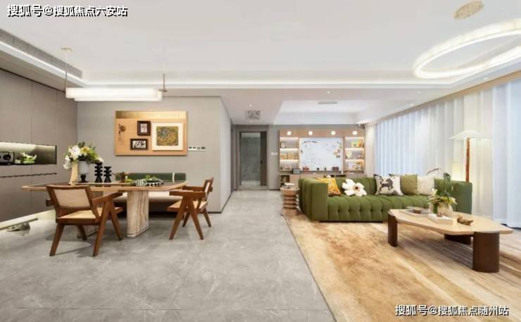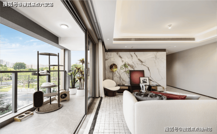 厨房采用金属边框双面柔光玻璃夹金纱门,寓意金玉满堂、福禄寿喜;客厅背景墙铺设“”玉树琼枝岩板,金色树枝纹路寓意玉树临风、开枝散叶;卧室内门采用真皮如意造型门锁,寓意手握如意、生活事事如意。