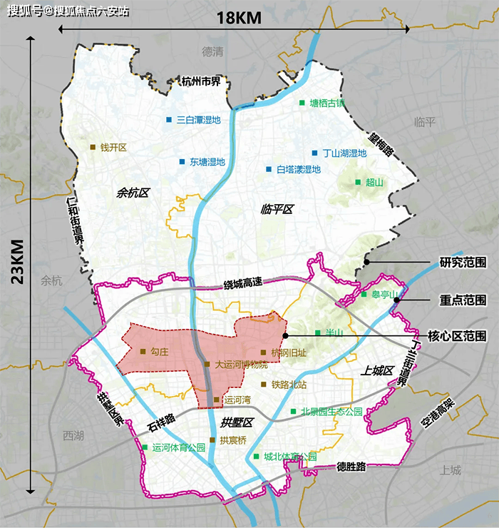 无界生活场景:以“无界生活”为核心理念,打造杭州首个“无界示范区”,约400米蜿蜒河岸线环抱社区,与半山国家森林公园、京杭大运河等自然胜境共筑“玉带半岛”生态磁场。